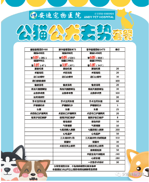 超 超 超級(jí)優(yōu)惠的絕育、洗牙、體檢套餐,月底截止,不要錯(cuò)過(guò)哦!為慶祝安迪旗下巴迪連鎖社區(qū)型 白水分院、開(kāi)發(fā)區(qū)分院開(kāi)業(yè)在即 安迪鳳臺(tái)街總店特推出儲(chǔ)值享折扣活動(dòng) 絕育、洗牙、體檢,最低1折起 低價(jià)享受、上好品質(zhì) 就 在 安 迪 關(guān)注公眾號(hào)并轉(zhuǎn)發(fā),集齊88個(gè)贊 即送犬貓通用加強(qiáng)狂犬疫苗1支 且免費(fèi)辦理養(yǎng)犬證 或貓咪精致洗護(hù)1次 詳情請(qǐng)咨詢0356-6989120